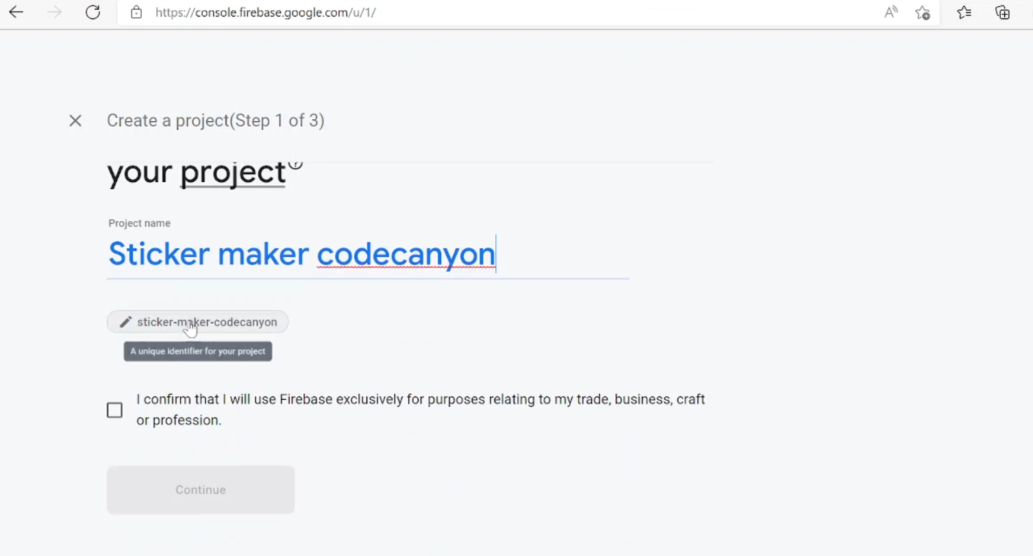 1. Go to Firebase Console, create new project - "Name the project whatever you want."