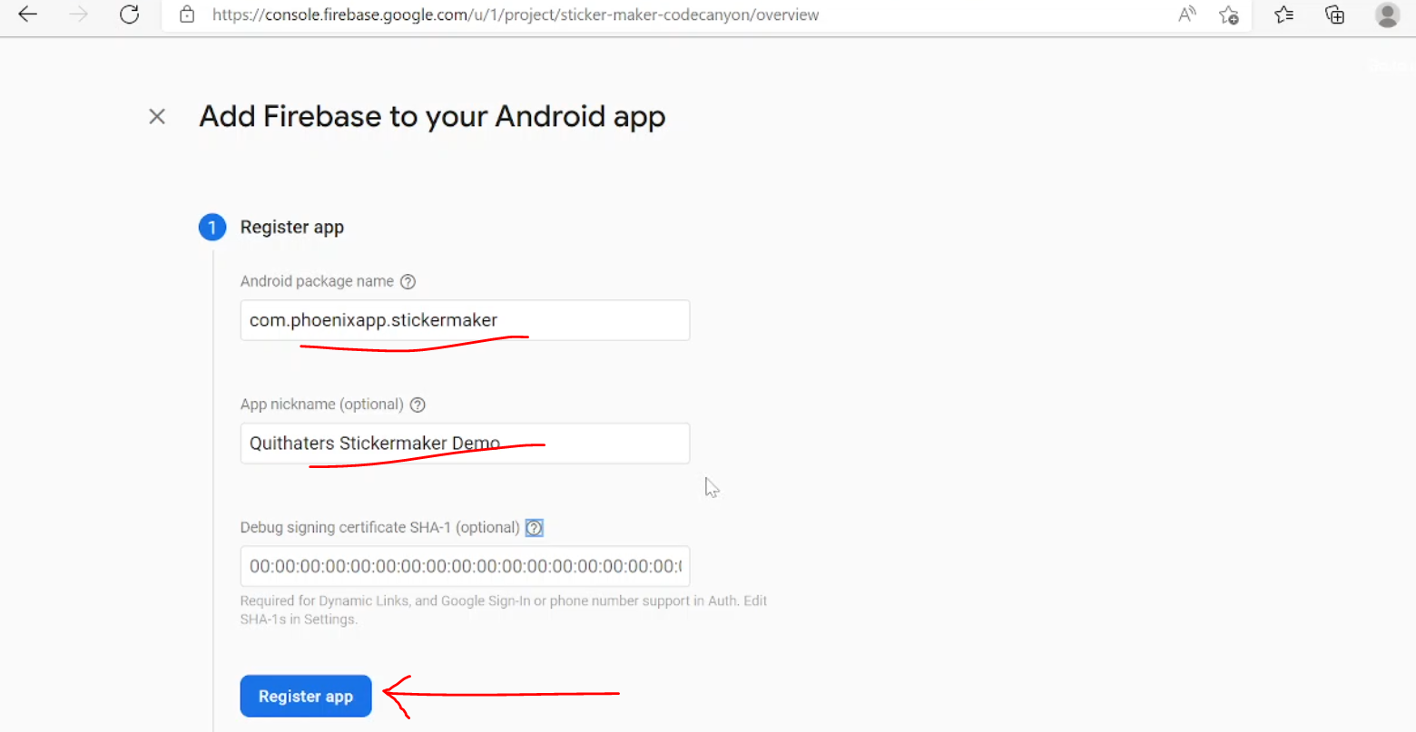 3. Enter the Application Package Name, you will get in AndroidManifest.xml file and click on register.