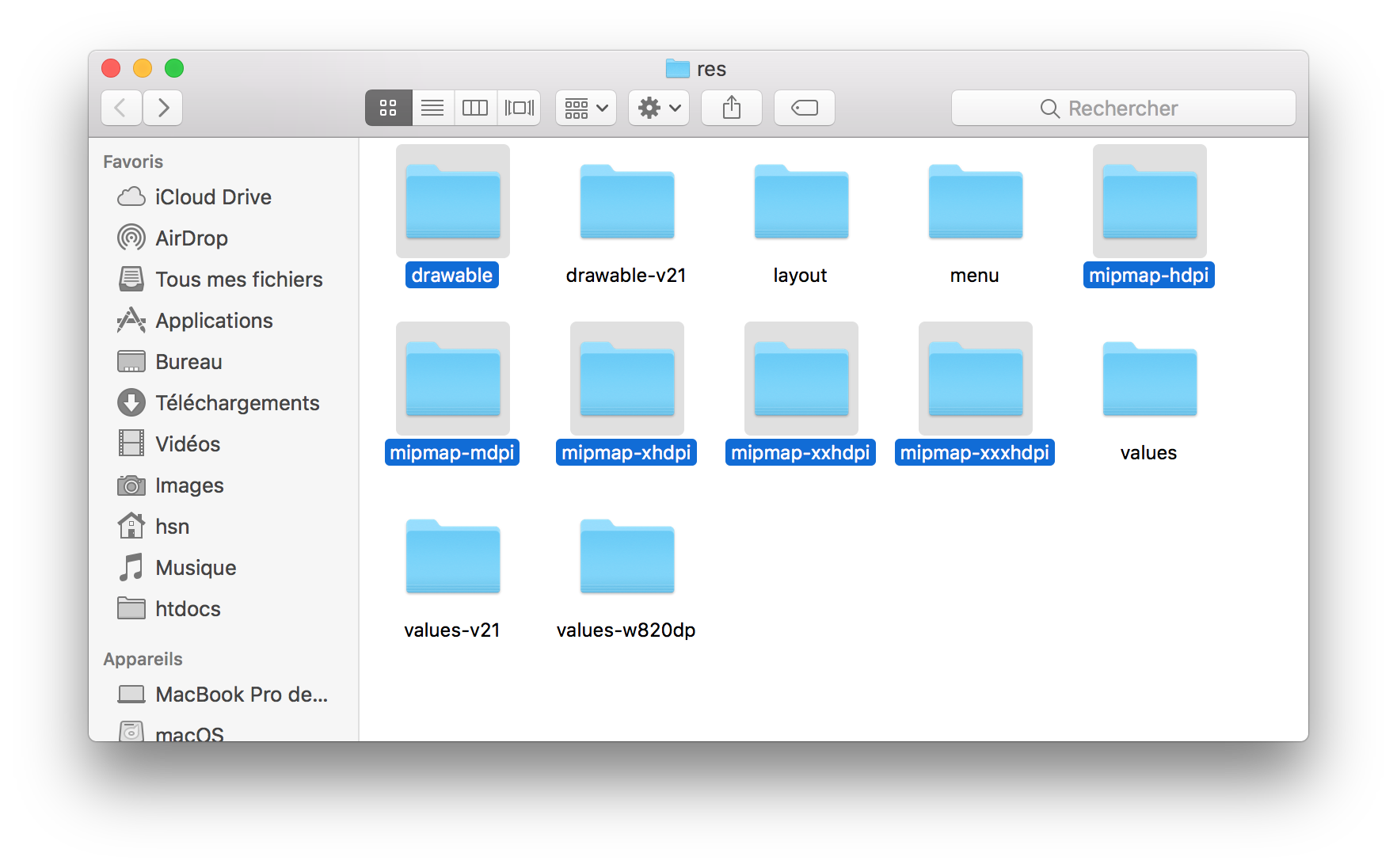 replace the ic_launcher.png image by your icon to mipmap-hdpi folder with name ic_launcher.png and size 72px x 72 px